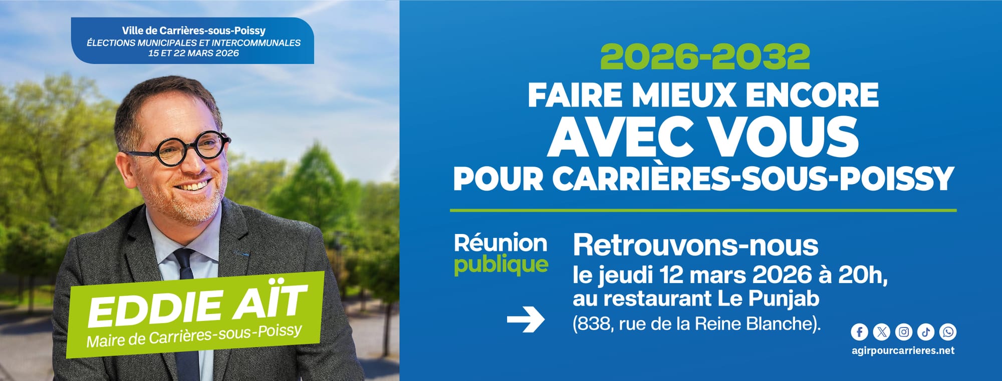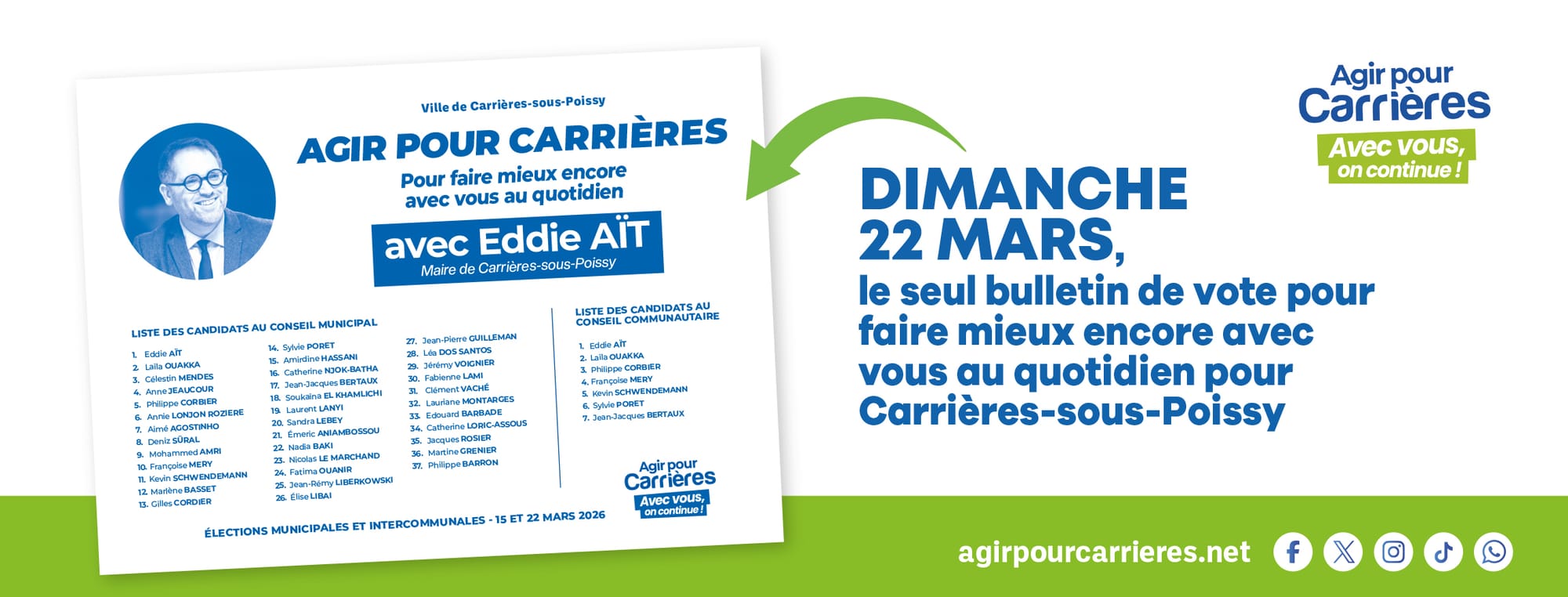 Nos engagements 2026-2032, vos candidats pour Carrières ! Retrouvons-nous pour un moment de partage, d'action collective et de mobilisation autour du Maire et de son équipe. Nous sommes impatients de passer ce moment tous ensemble !